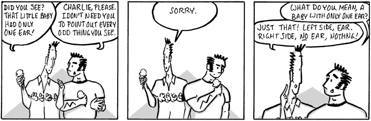 I did see a baby with only one ear at the farmer’s market, but I didn’t point it out to Eric. Some days, I feel like I just can’t draw. Today was one of those days. So my apologies.